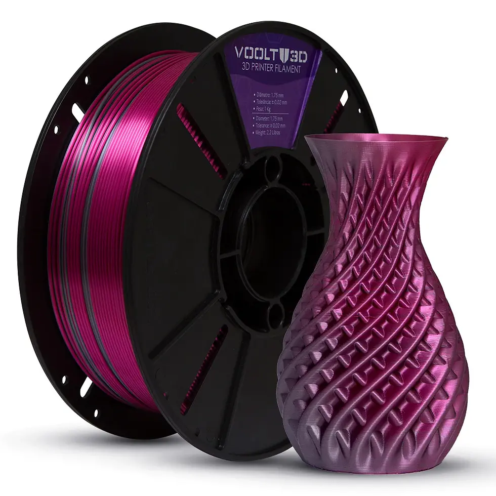 Filamento PLA Duo Color Dourado e Roxo V-Silk High Speed Premium - 1Kg