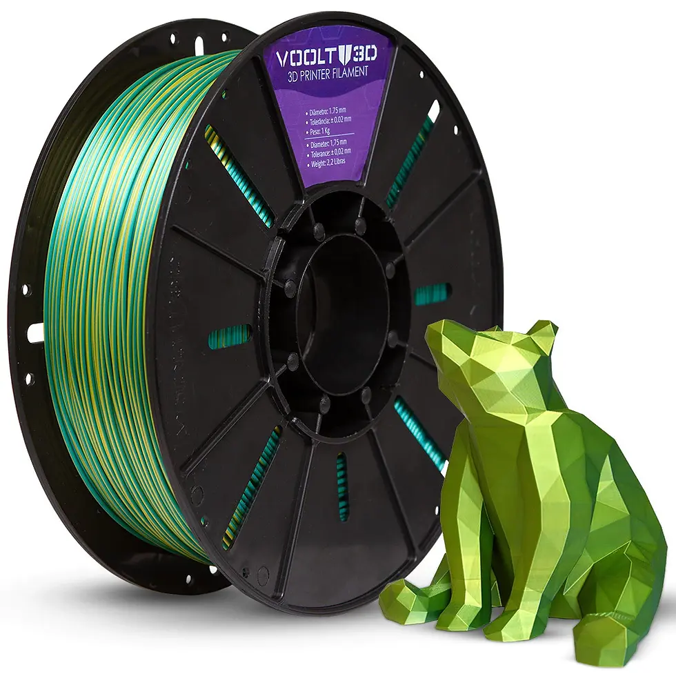 Filamento PLA Duo Color Shadow Dourado e Verde V-Silk High Speed Premium - 1Kg